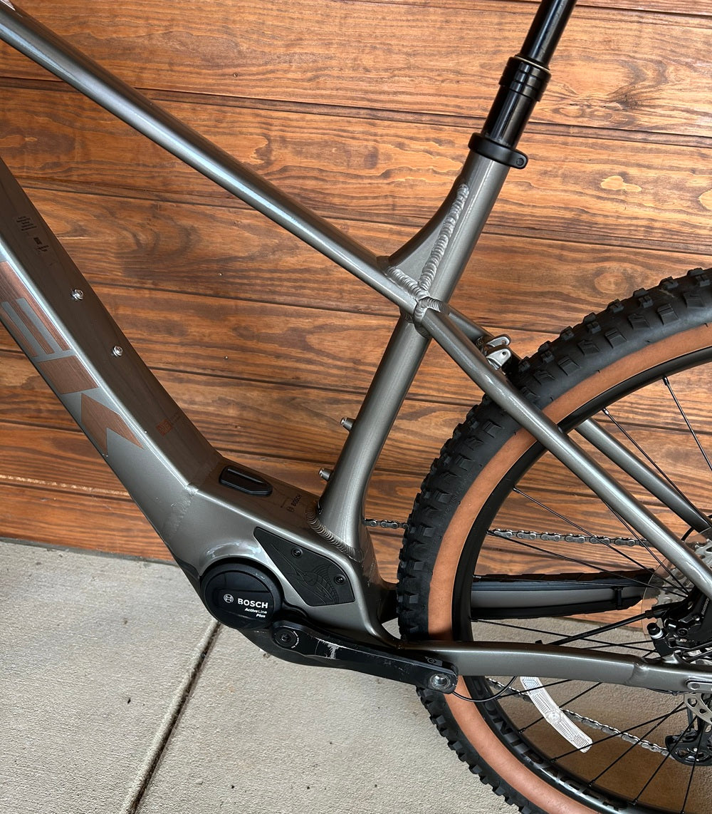 Marlin+ 8 is an electric mountain bike that's ready to up your game on the trail. Its Bosch Active Line Plus motor gives you just the boost you need for getting up steep climbs and riding farther, and doesn't break the bank, and a 120mm suspension fork keeps handling smooth through the rough stuff. Upgraded components, like wide tubeless-ready wheels and tires and a 12-speed Shimano drivetrain make this a trail-savvy ride that's ready to go anywhere.